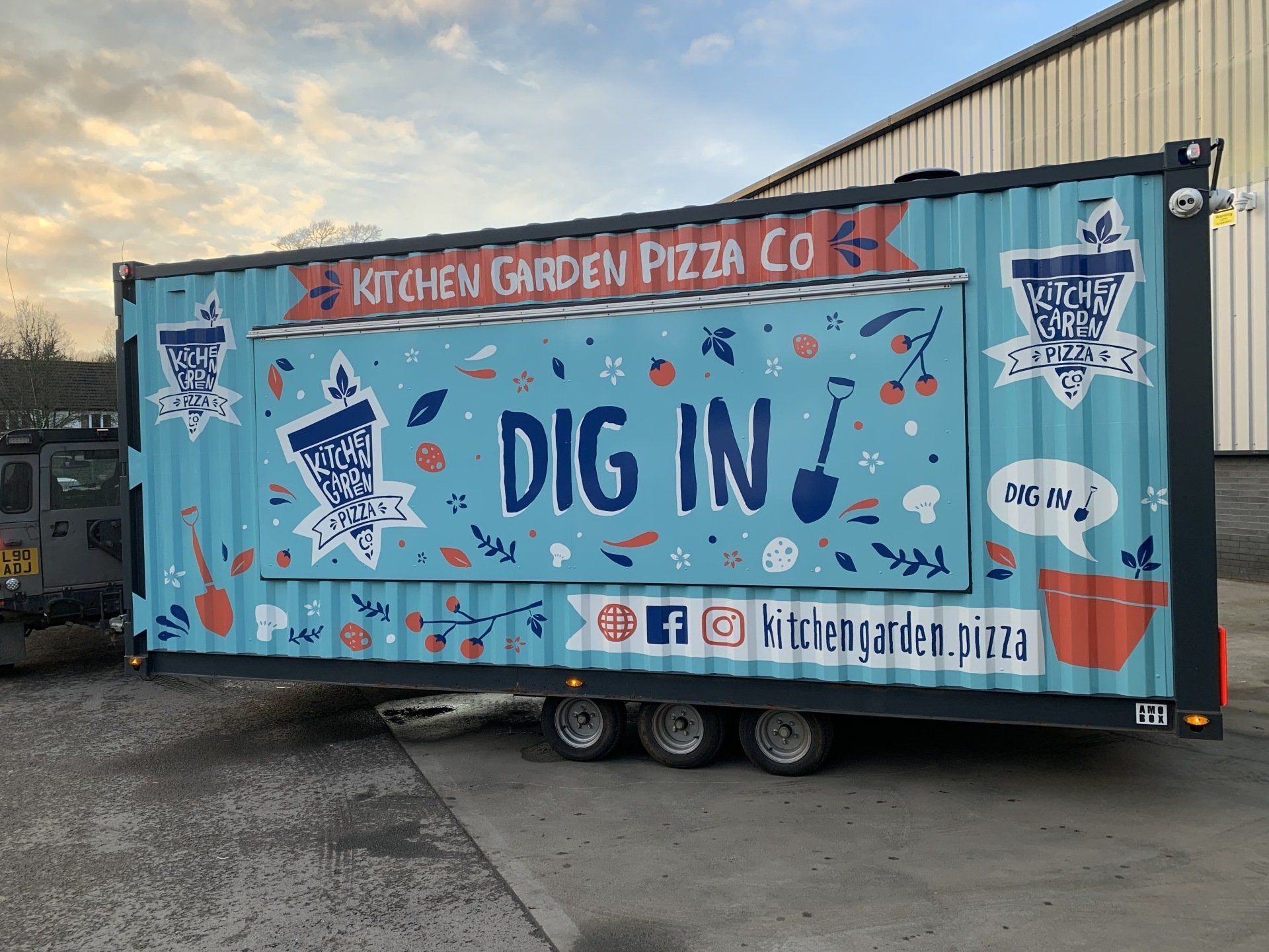 Sam saw an opening for a mobile Pizza Kitchen, which we originally gave a rather conservative branding to, a couple of years ago.
