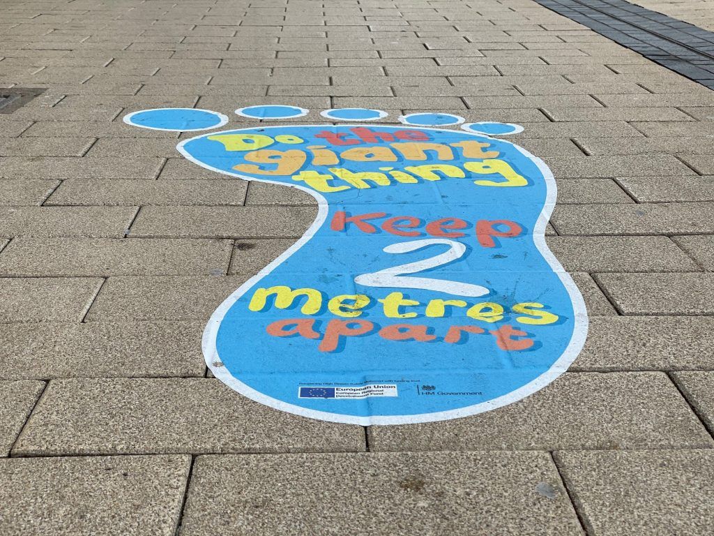 The aim of the graphics was to encourage social distancing among shoppers when they were out and about on the high street, helping to limit any further spread of the Covid-19 virus. As such, Bristol City Council required an attractive design that would stand out under shoppers’ feet. We quickly identified that Drytac Polar Street FX was the ideal solution for the project.