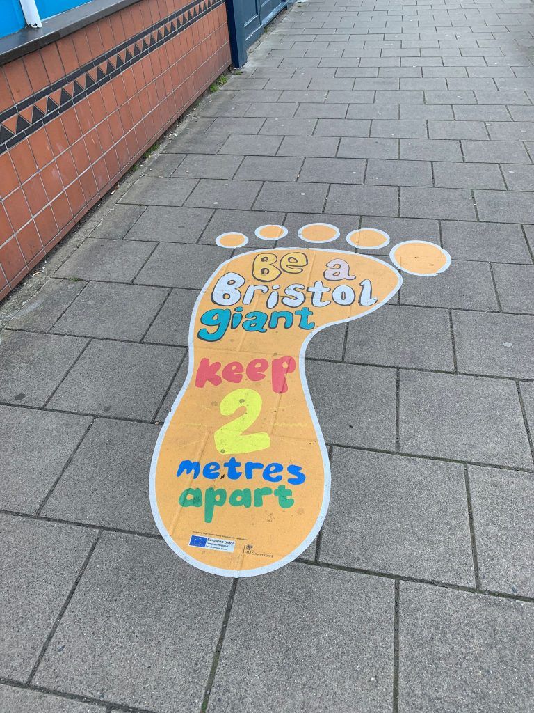 We recently used Drytac Polar Street FX aluminium print media to produce a range of eye-catching outdoor floor graphics to promote social distancing across the city of Bristol. The footprint style graphics were designed by Bristol City Council for use in high traffic areas of the city ahead of non-essential shops reopening in mid-April.