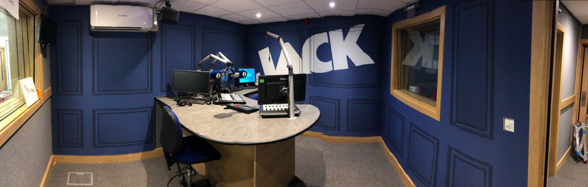 Removal of old graphics. Survey a detailed set of measurements, pack out walling with batons, to cater a level fixing and create wall frames to carry stretch fabric graphics. Fully installed around the radio broadcasting schedule, to a high standard with cut outs and apertures for windows, switches and other wall mounted items.